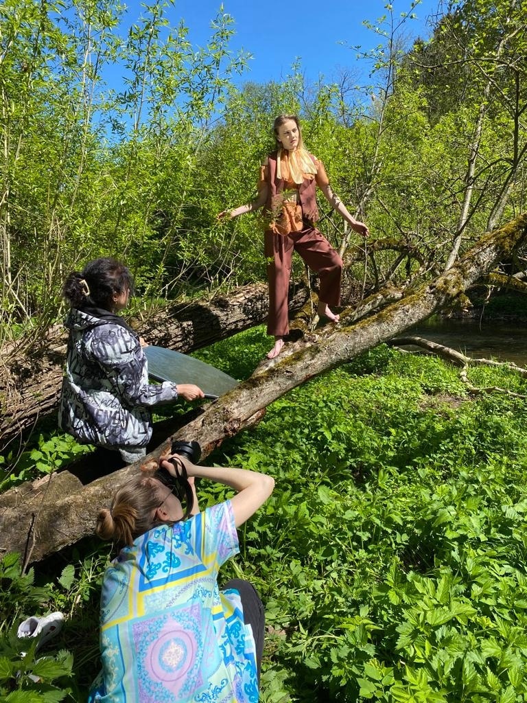 Creating clothing designs, making moodboards and directly producing the pieces of clothing.