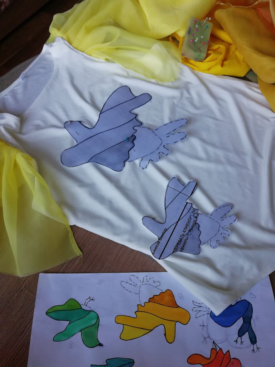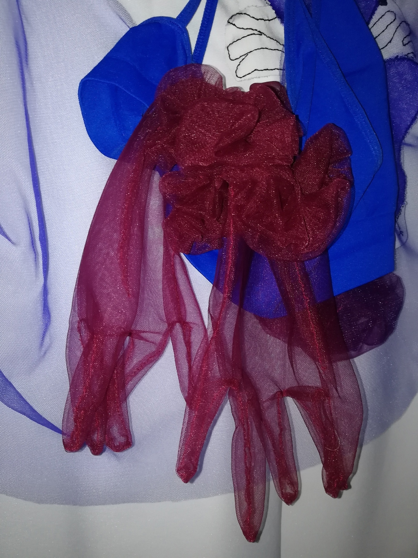 Applying the final decorations, the abstractions themselves, to the finished costumes.